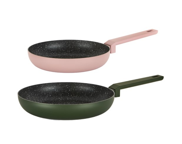 מארז 2 מחבתות אלומיניום מסדרת SPLASH תוצרת המותג SOLTAM. צבע ירוק וורוד. קל לניקוי.